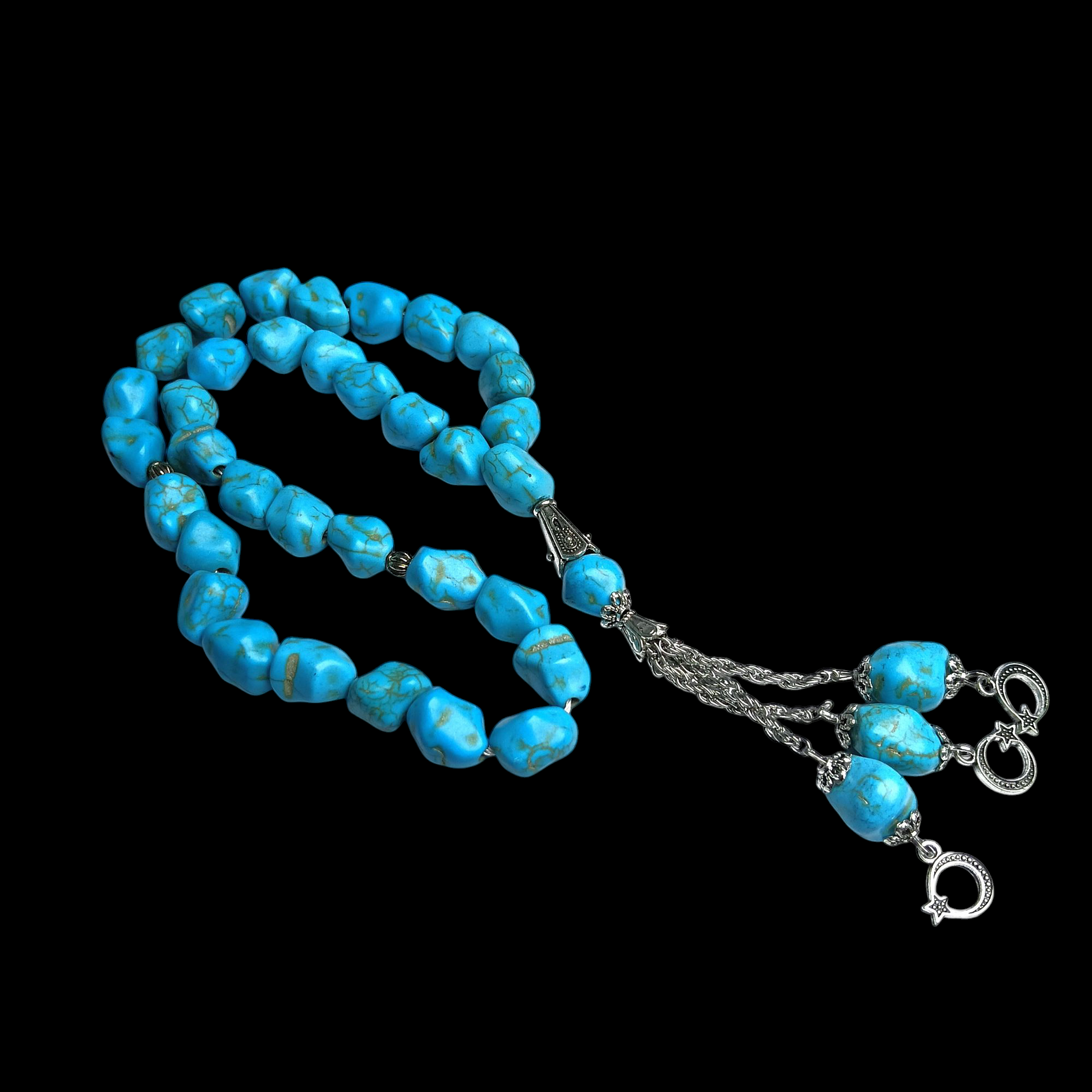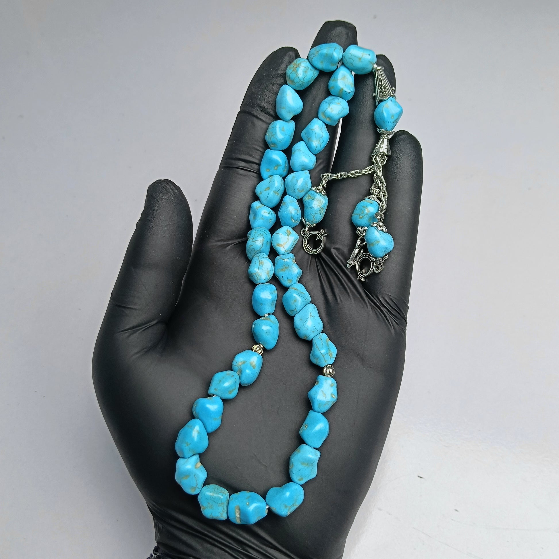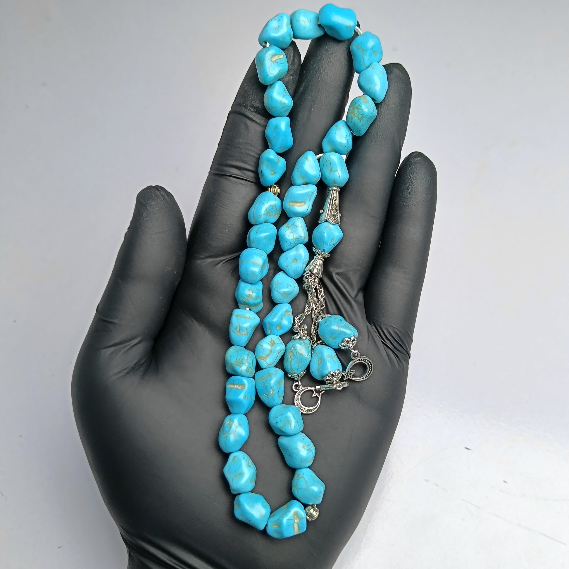 خالص فیروزی پتھر سے بنی خوبصورت تسبیح – 33 دانے، ابھی آرڈر کریں