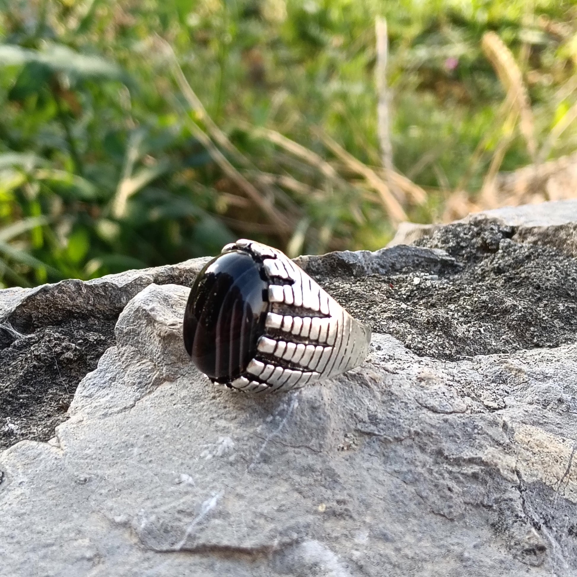 Elegant and powerful Black Sulamani Aqeeq Stone Ring, crafted for those who value beauty with spiritual energy. Known for protection and positivity, this natural Sulamani Aqeeq enhances confidence and brings balance to your life.
