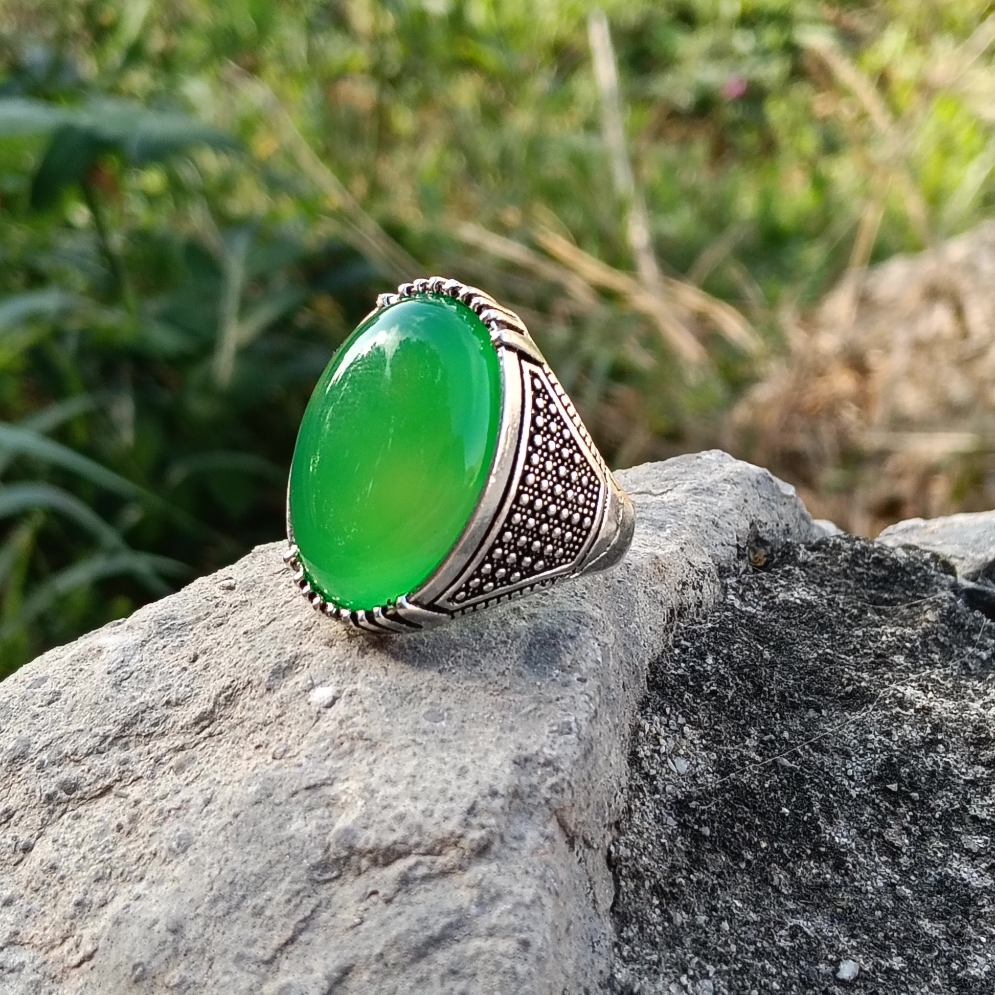 "Elegant Green Aqeeq Stone Ring – Timeless and Unique Gemstone Jewelry"