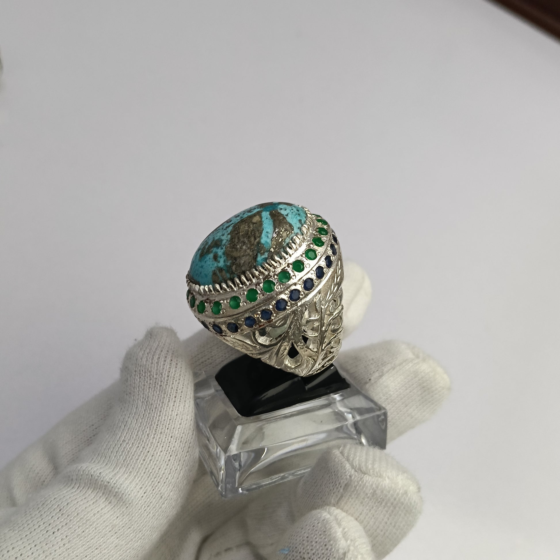 Presenting a stunning Irani Shejri Feroza Stone Ring, crafted with top-quality silver and a natural turquoise (Feroza) stone from Iran. Known for its spiritual and protective qualities, this ring is perfect for those who value beauty and energy together.
