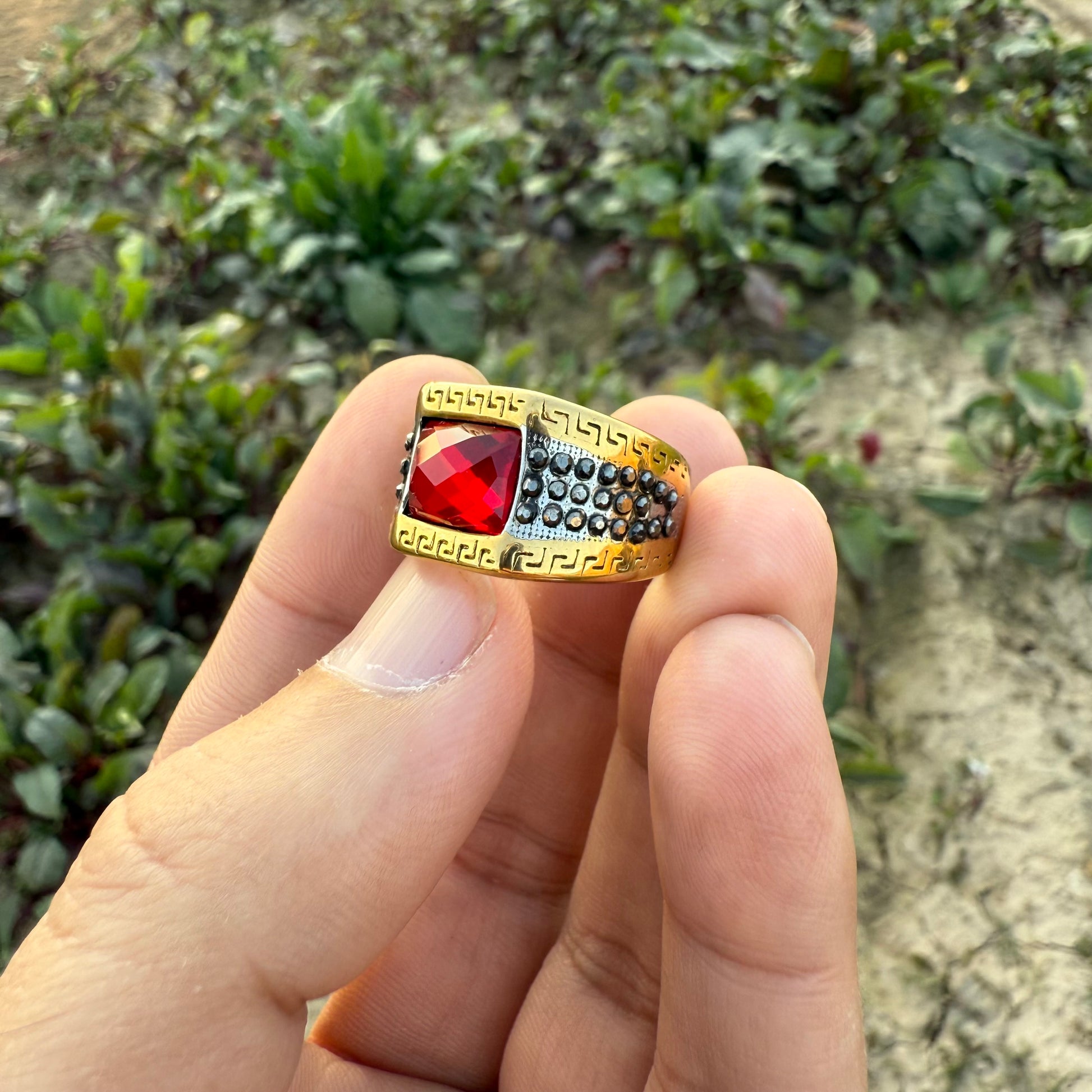 Enhance your style with our Ruby Turkish Clone Ring, featuring a striking ruby-red stone set in a beautifully crafted Turkish design. This ring reflects elegance, strength, and timeless tradition — perfect for men who appreciate bold and classic accessories.